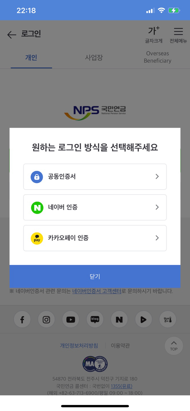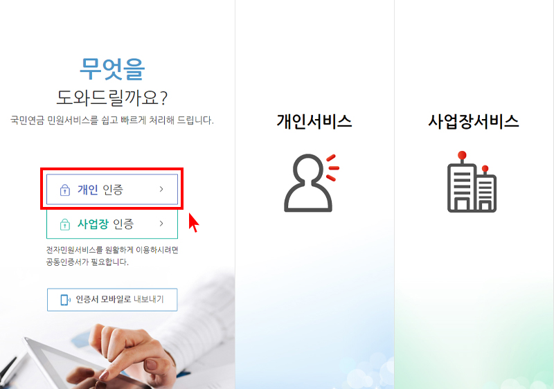 국민연금 홈페이지의 로그인 방식은 다양하지만 공통적으로 인증서가 필요합니다. 최근 공인인증서가 폐지되고 공동 인증서로 변경되면서 다양한 민간 인증서를 사용할 수 있게 되었습니다. 클릭 한 번이면 쉽게 인증이 가능한 것이 장점입니다.