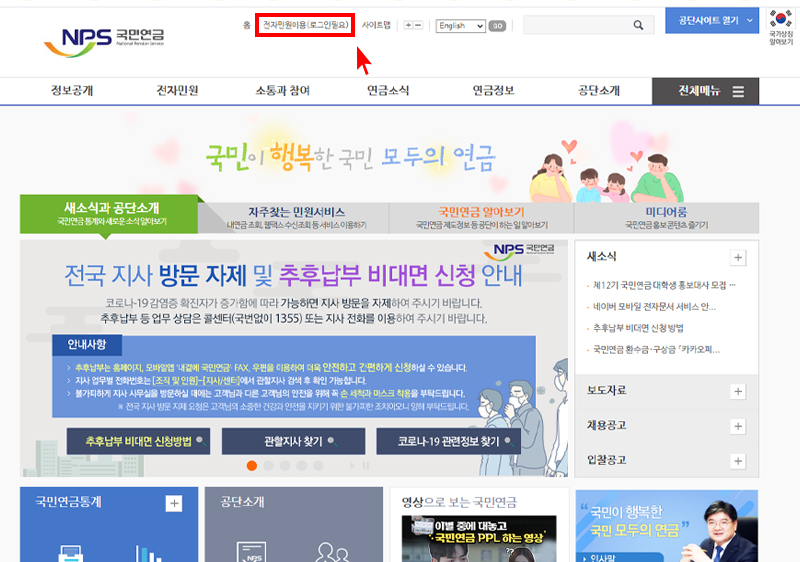 국민연금 납부액은 PC와 모바일에서 확인할 수 있습니다. 먼저 PC를 통해 조회하는 방법을 알아보도록 하겠습니다. 국민연금공단 홈페이지에 접속합니다.