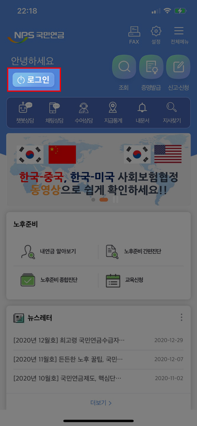 앱 설치가 완료되었으면 국민연금 앱을 실행합니다.
