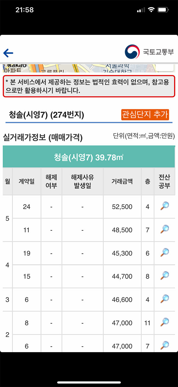 또한 실거래가 조회를 통해 얻을 수 있는 정보는 어디까지나 참고만하시고 매매를 원하신다면 직접 해당 지역을 방문하여 정보를 확인하시길 추천드립니다.