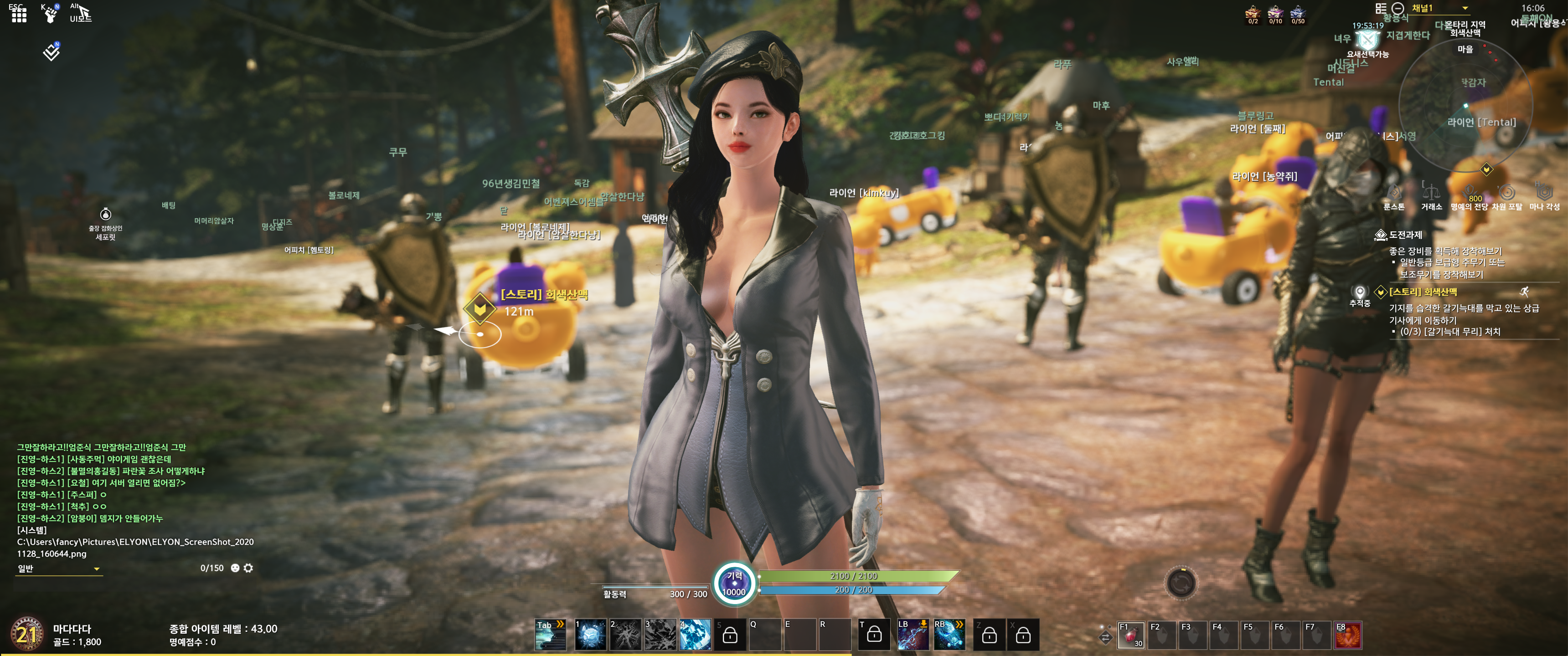 그리고 장비를 추가한 캐릭터의 의상이 도무지 시대를 알 수 없게 만든다는 것입니다. 중세 의상을 입은 npc와 현대복을 입은 캐릭터와 라이언.... 아무리 역할 중심의 MMORPG이고 스토리보다 렙업이나 퀘스트가 중요하다고 하지만 이정도면 오픈 월드를 넘어 카카오 유니버스인 것 같습니다.