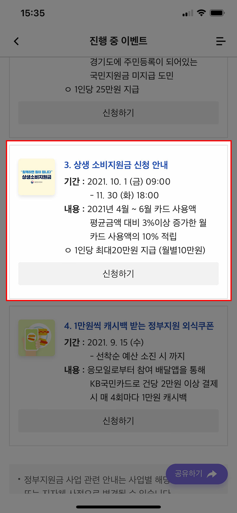 코로나 상생소비지원금 신청