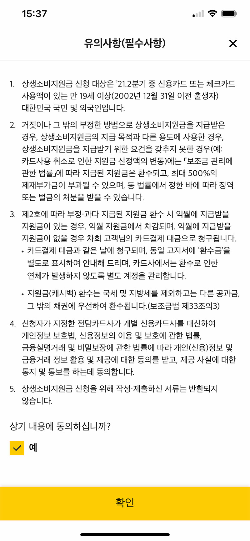 다른 재난지원금과는 달리 소비를 독려하는 사업이다 보니 대상자 기준이 까다롭지 않습니다. 만 19세 이상(2002년 12월 31일 이전 출생자)이고, 2021년 4월~6월까지 본인 명의로 된 체크 또는 신용카드 사용실적이 있으면 누구나 신청할 수 있습니다.