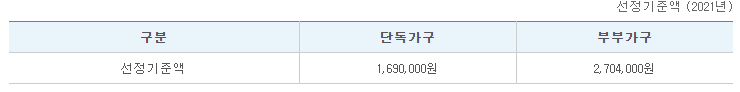 소득인정액을 확인하셨다면 선정기준액 보다 낮은 지를 확인해야 합니다. 2021년 기초연금 선정기준액은 지난해와 조금 다른데요. 매 년 달라지는 항목이니 사전에 확인하시면 좋습니다.